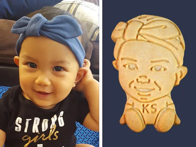 Capture your kid's dazzling smile, and turn them into a super cute cookie that looks just like them! When we work our cookie magic, we create an adorable personalized cookie that looks just as cute as your superstar kid!