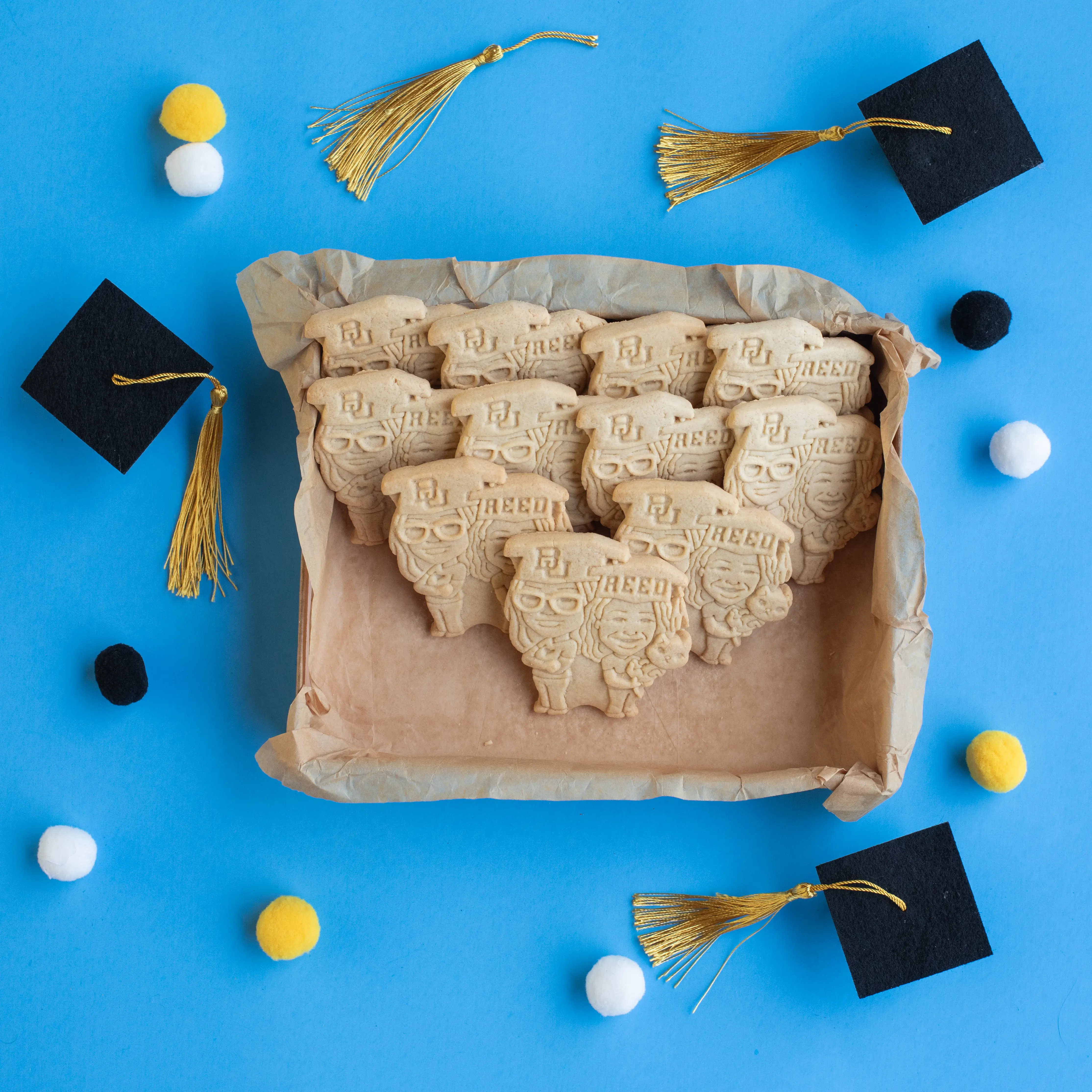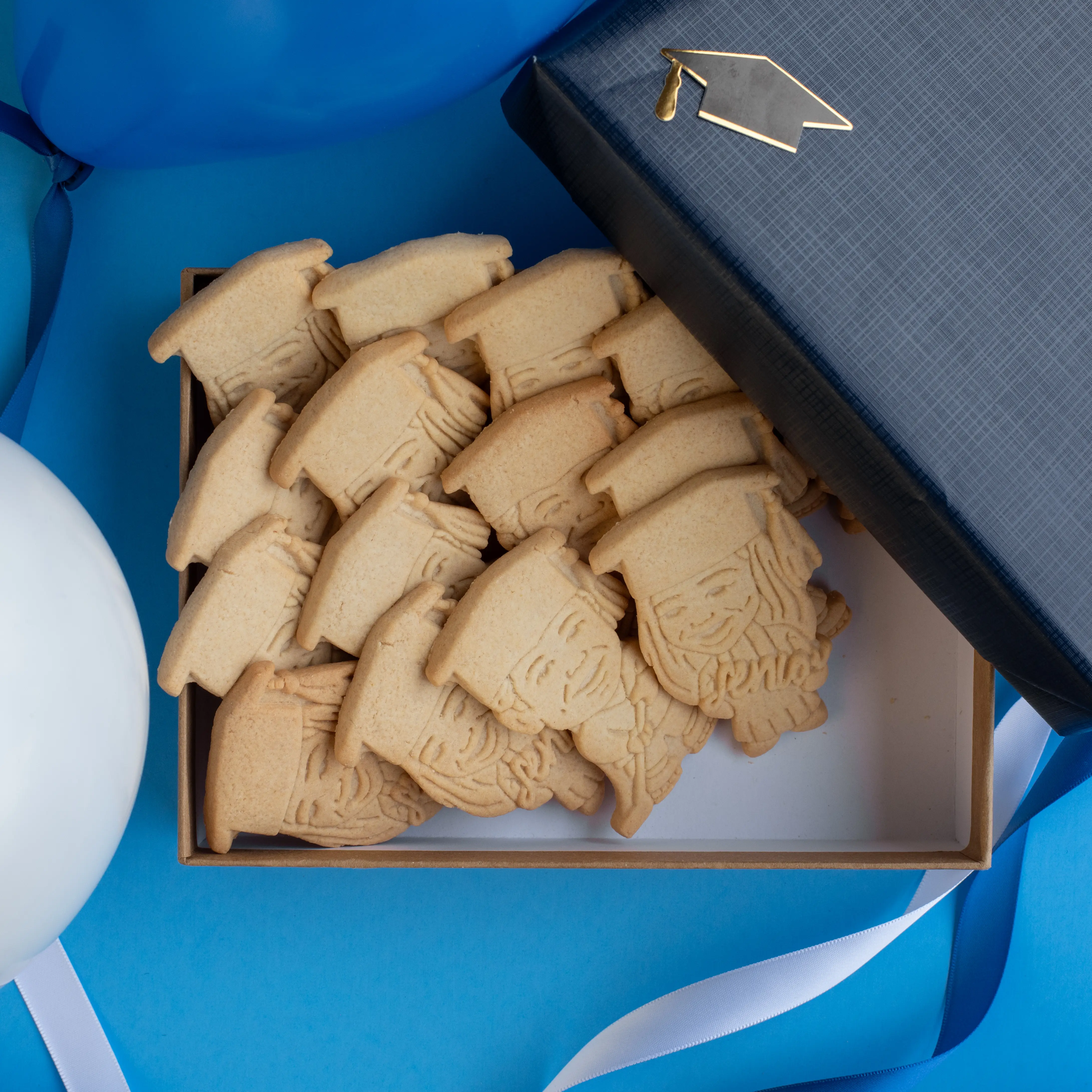 We take your grad's photo and turn it into a hand-painted, 3D cookie in our signature style. Starting at just $60 for a Crazy Gift Box of 24 cookies.
