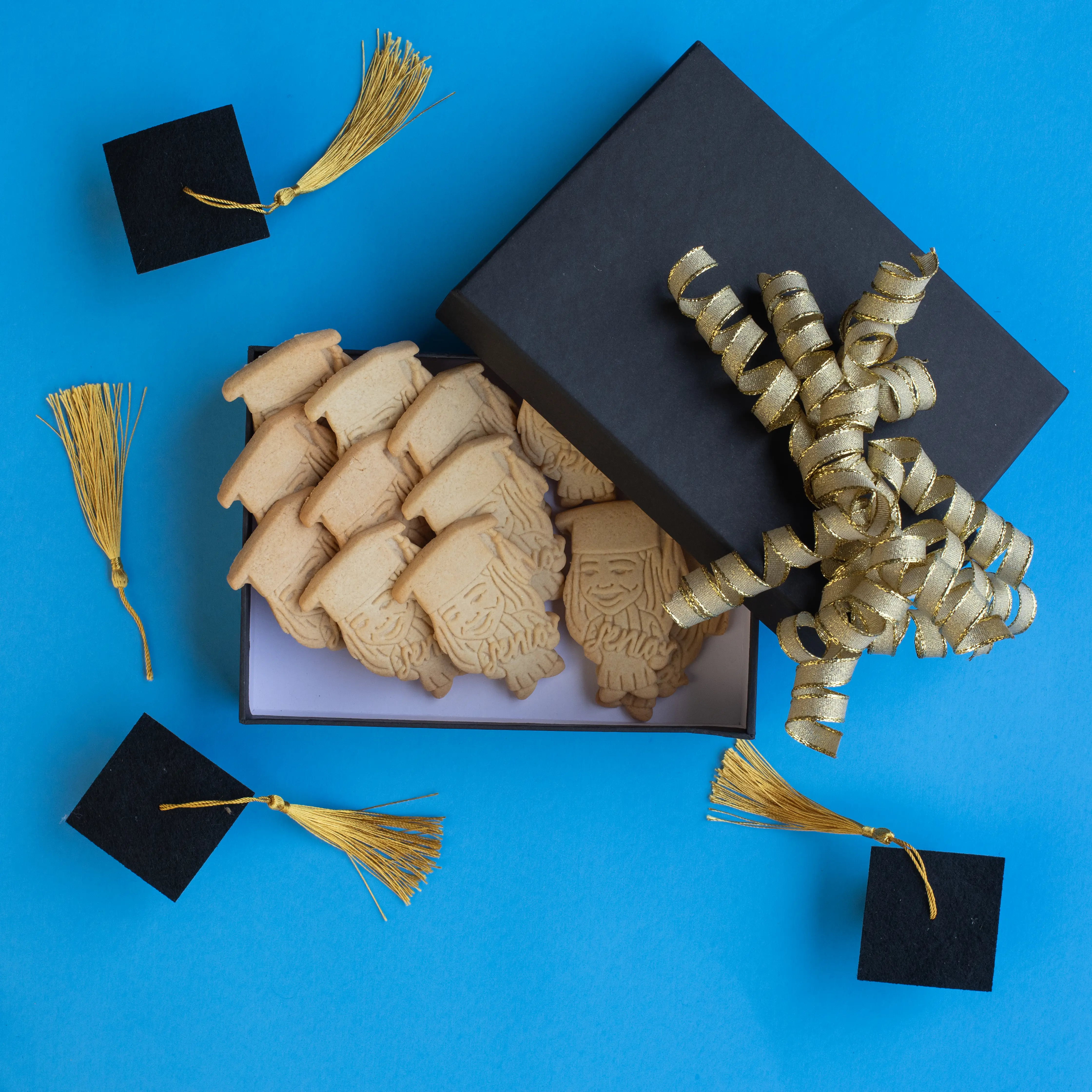 Not everyone can make it to the ceremony — but you can still make the grad smile. Our 24-cookie gift box ships nationwide, arriving fresh and ready to enjoy.
